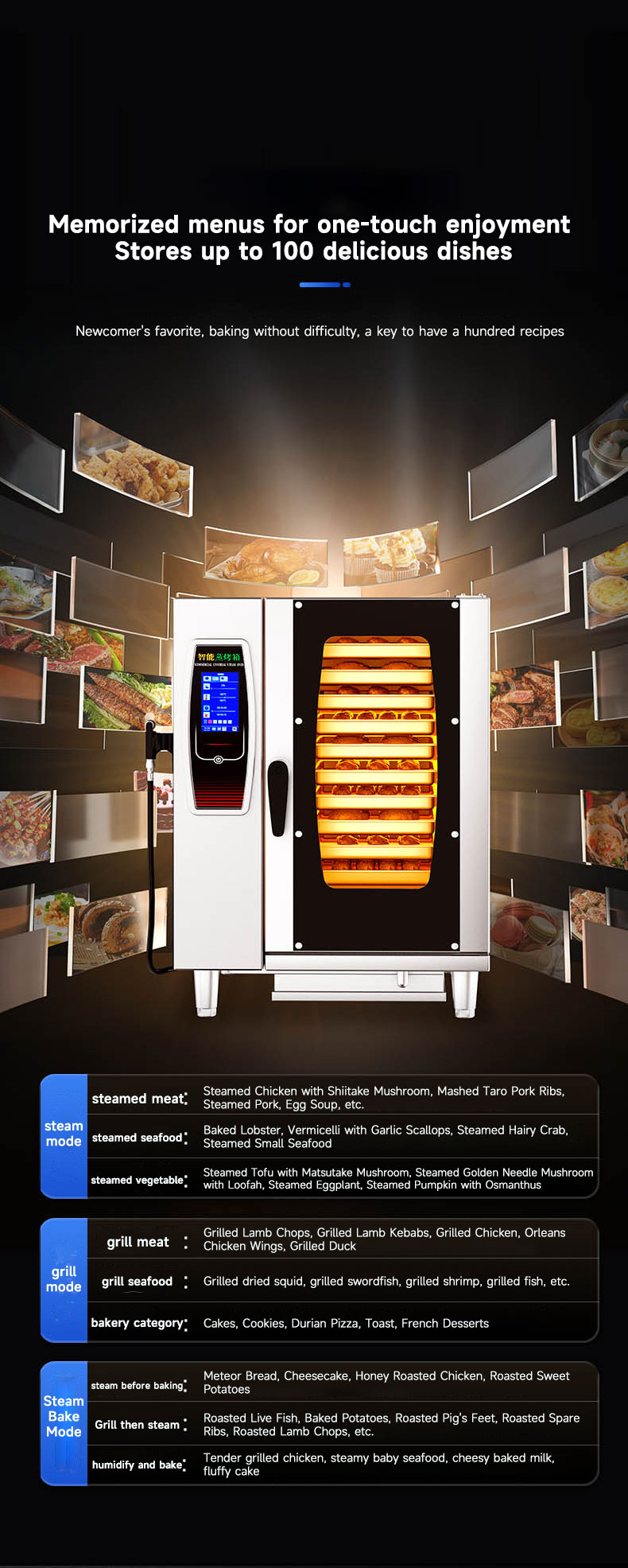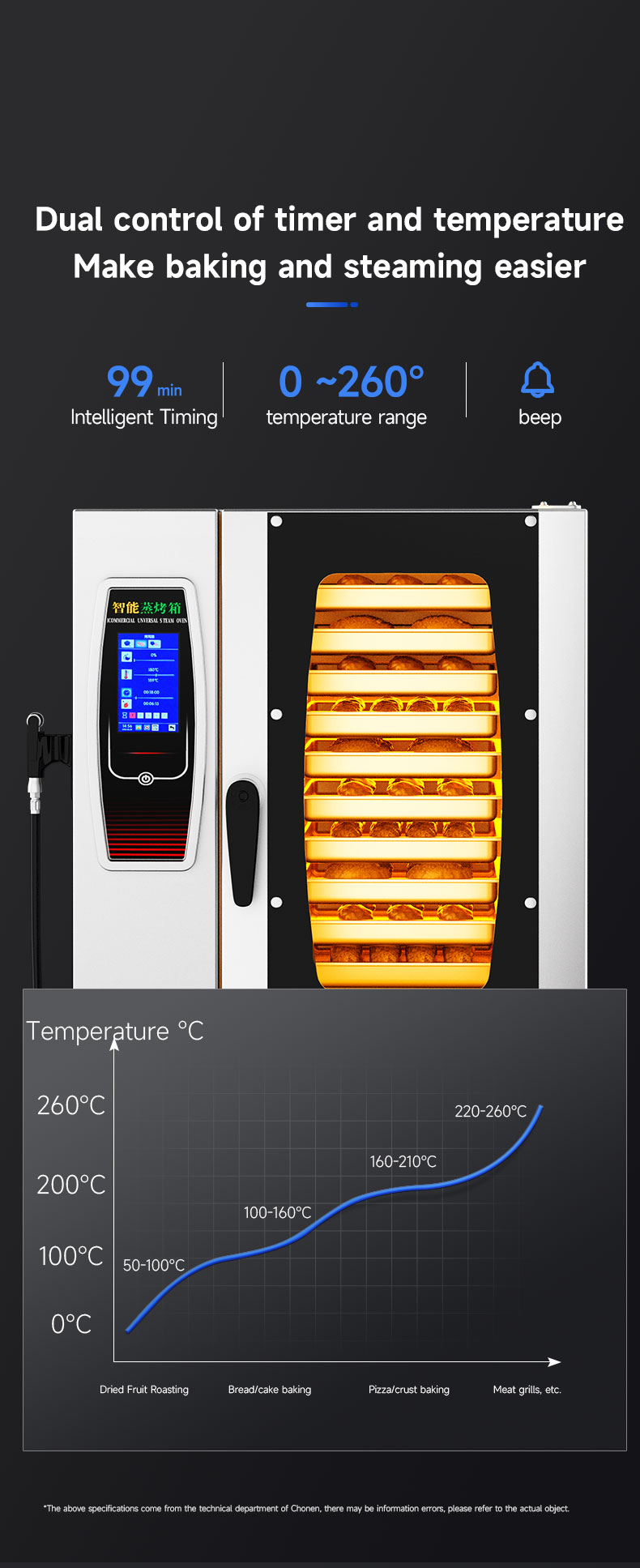 Power: Single steam 380v/18kw, single bake 380v/18kw, steam and bake 380v/18kw+18kw