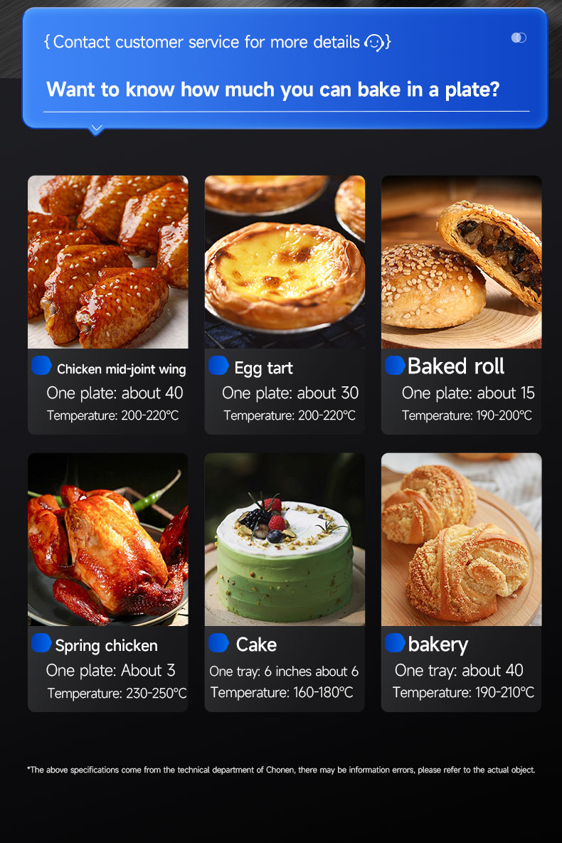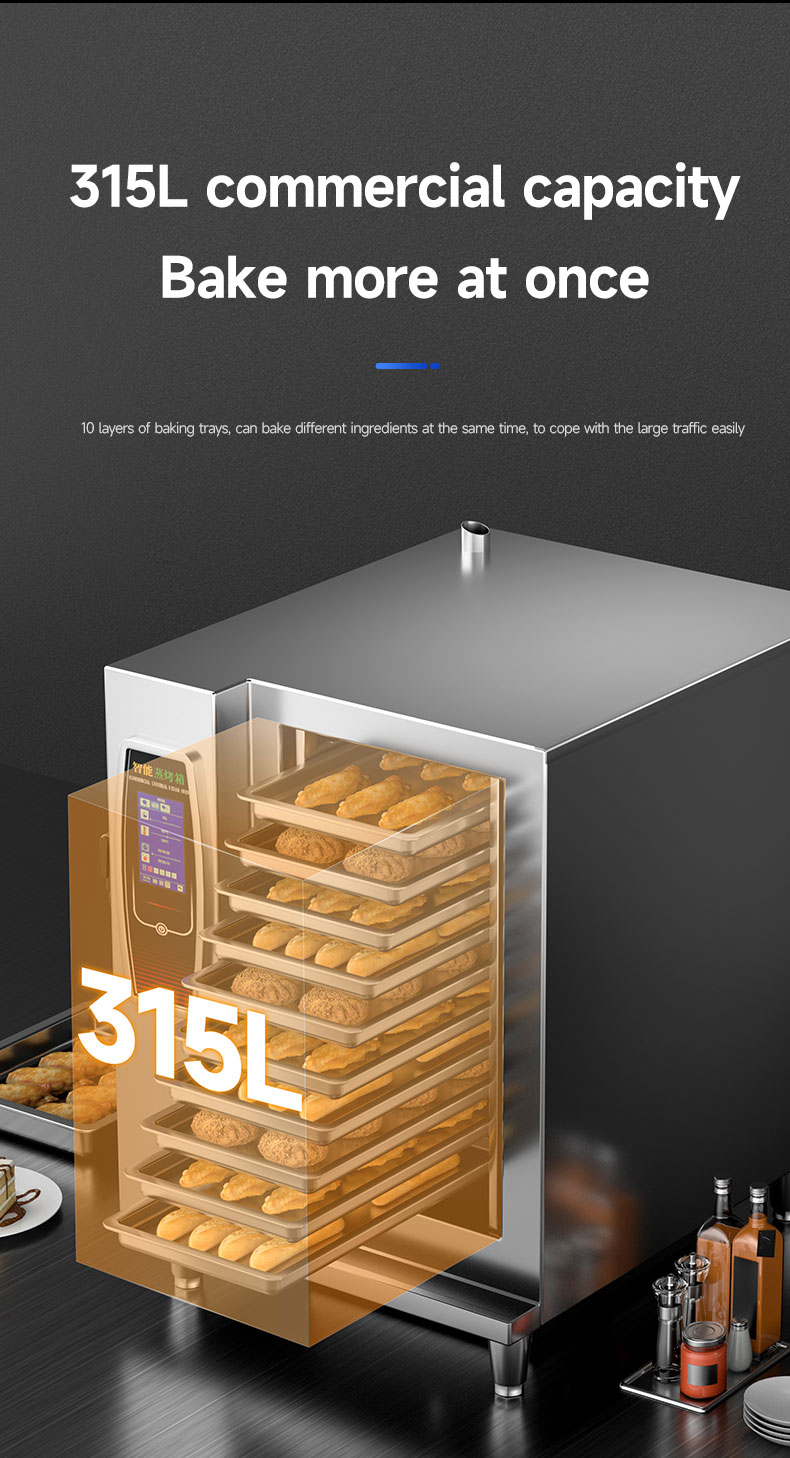 Power: Single steam 380v/9kw, single bake 380v/10kw, steam and bake 380v/9kw+10kw