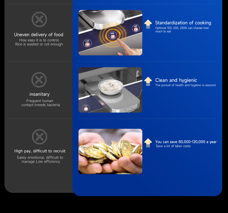 Rice Dispensing Efficiency: 3000-3600 servings per hour