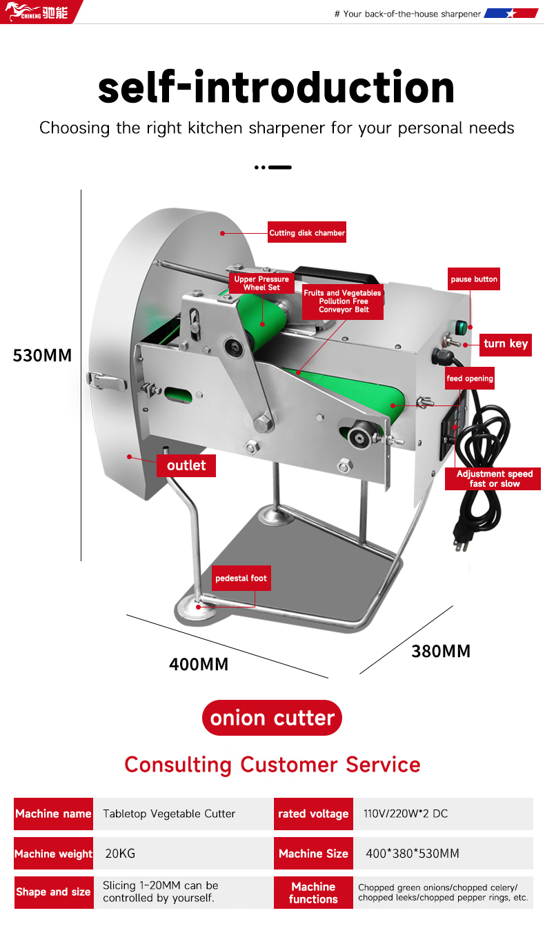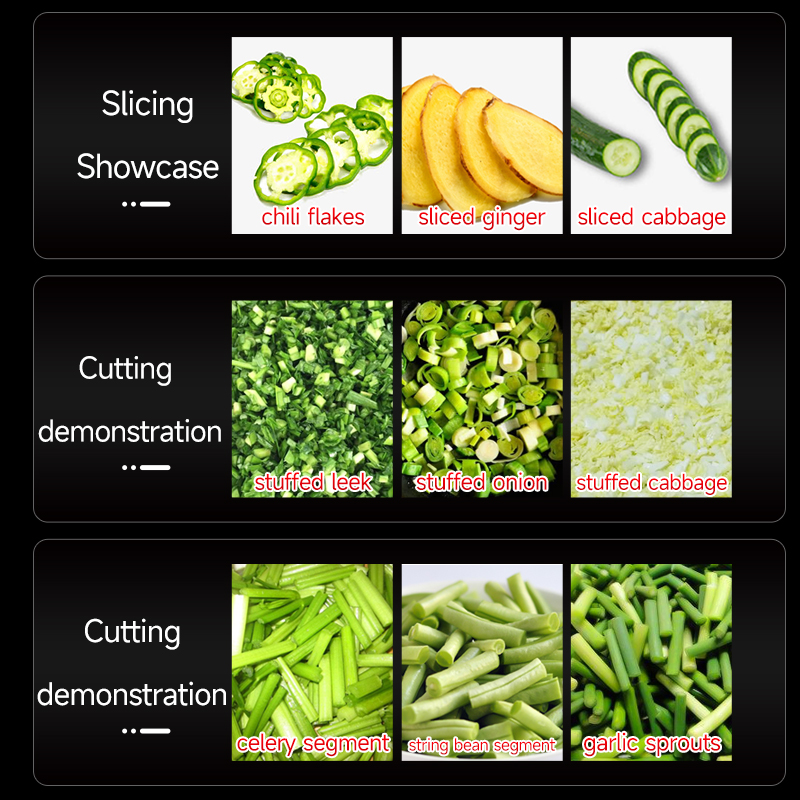 Machine Functions: Chopping green onions, celery, leeks, chili rings, etc.