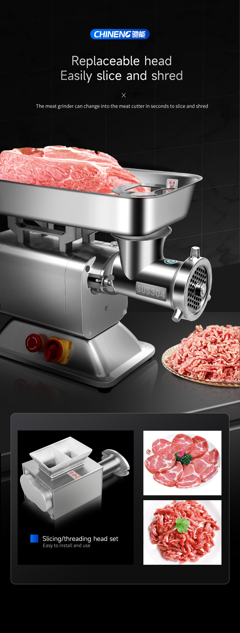 Working Efficiency: Grinding: 250kg/h    Slicing: 300kg/h