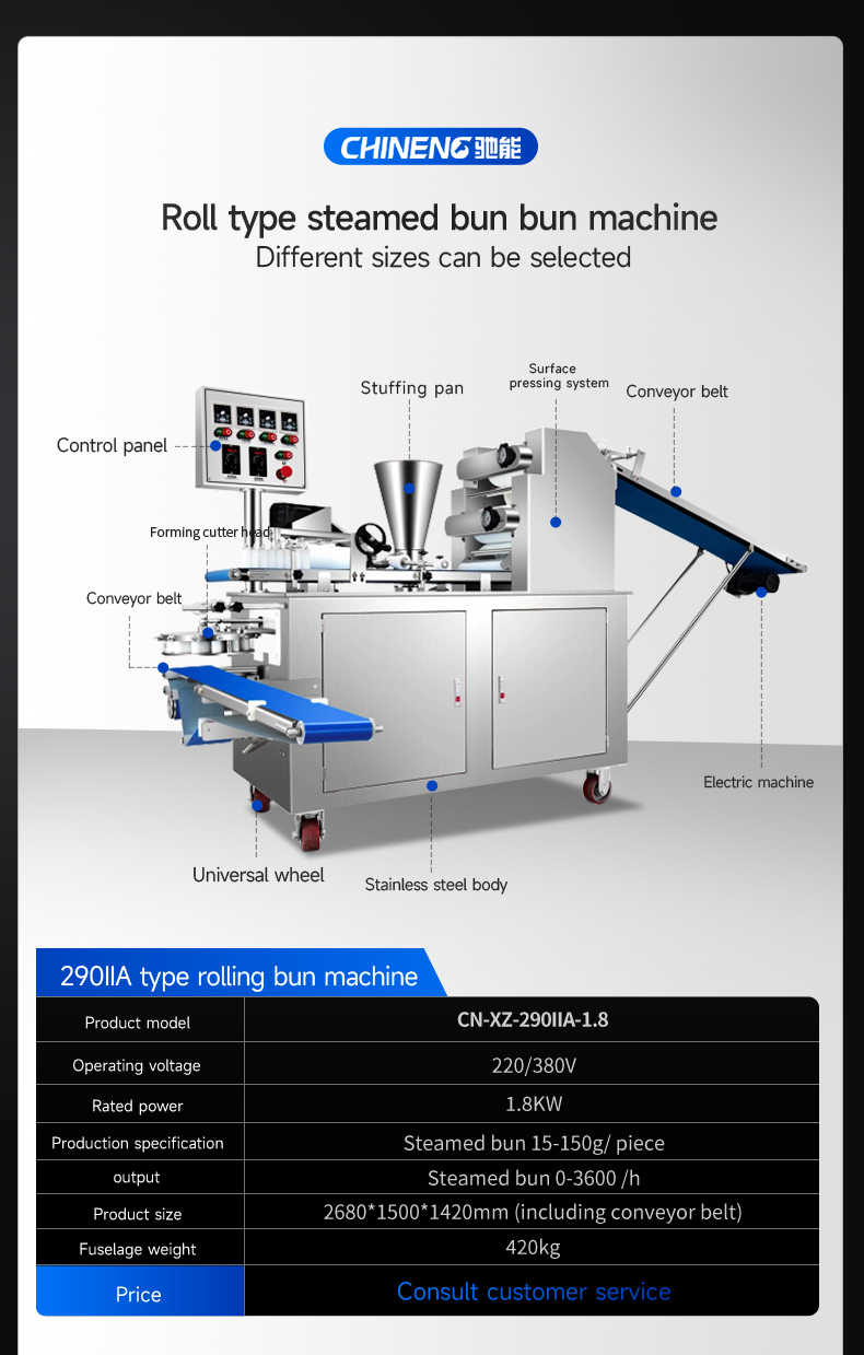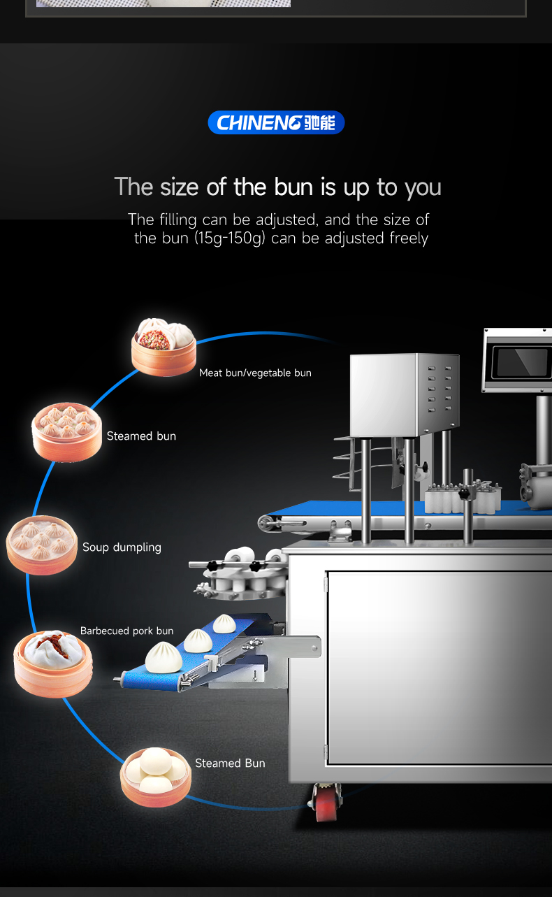 Output Capacity: Buns 0-3600 pieces/h, steamed buns 2000-7200 pieces/h