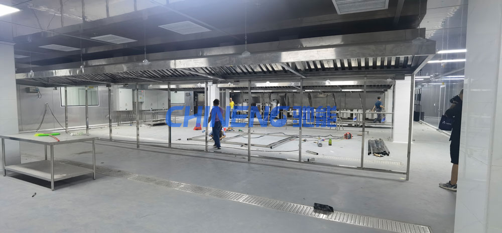厨房设备:推车式蒸柜,金属探测仪,大型消毒房,洗箱机,斜插式长龙洗碗机,臭氧发生器,紫外线发生器,大型冷库,洗米机,百万级空气净化器,微波杀毒机,气泡蔬菜清洗线,毛辊脱皮机等