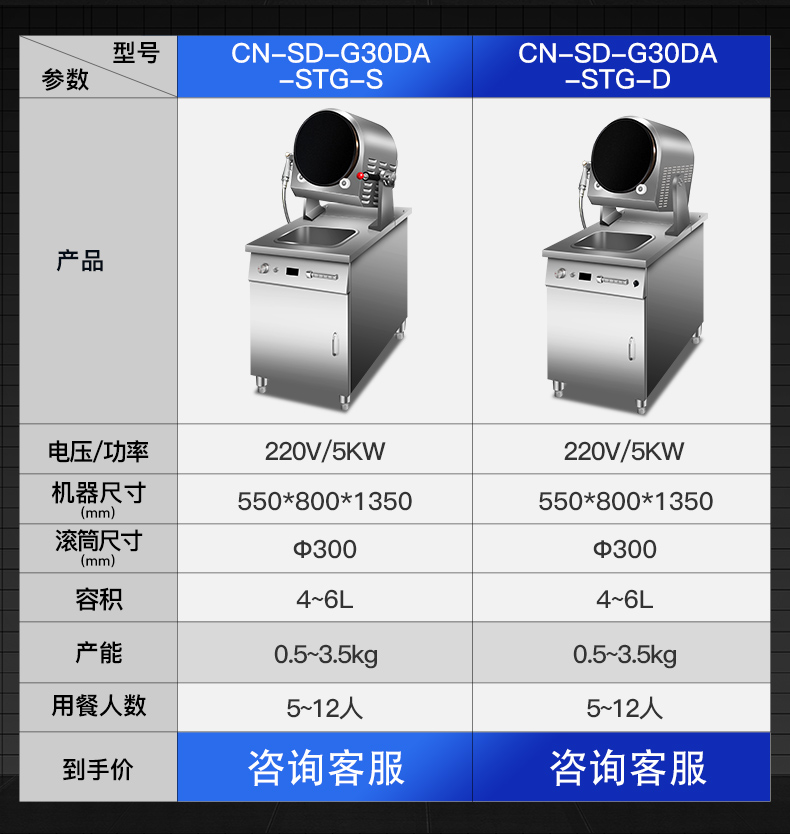电控翻锅+带急停功能+红外线测试+存储800个菜谱(智能学习功能)+智能实时语音播报功能+带三路自动喷料口